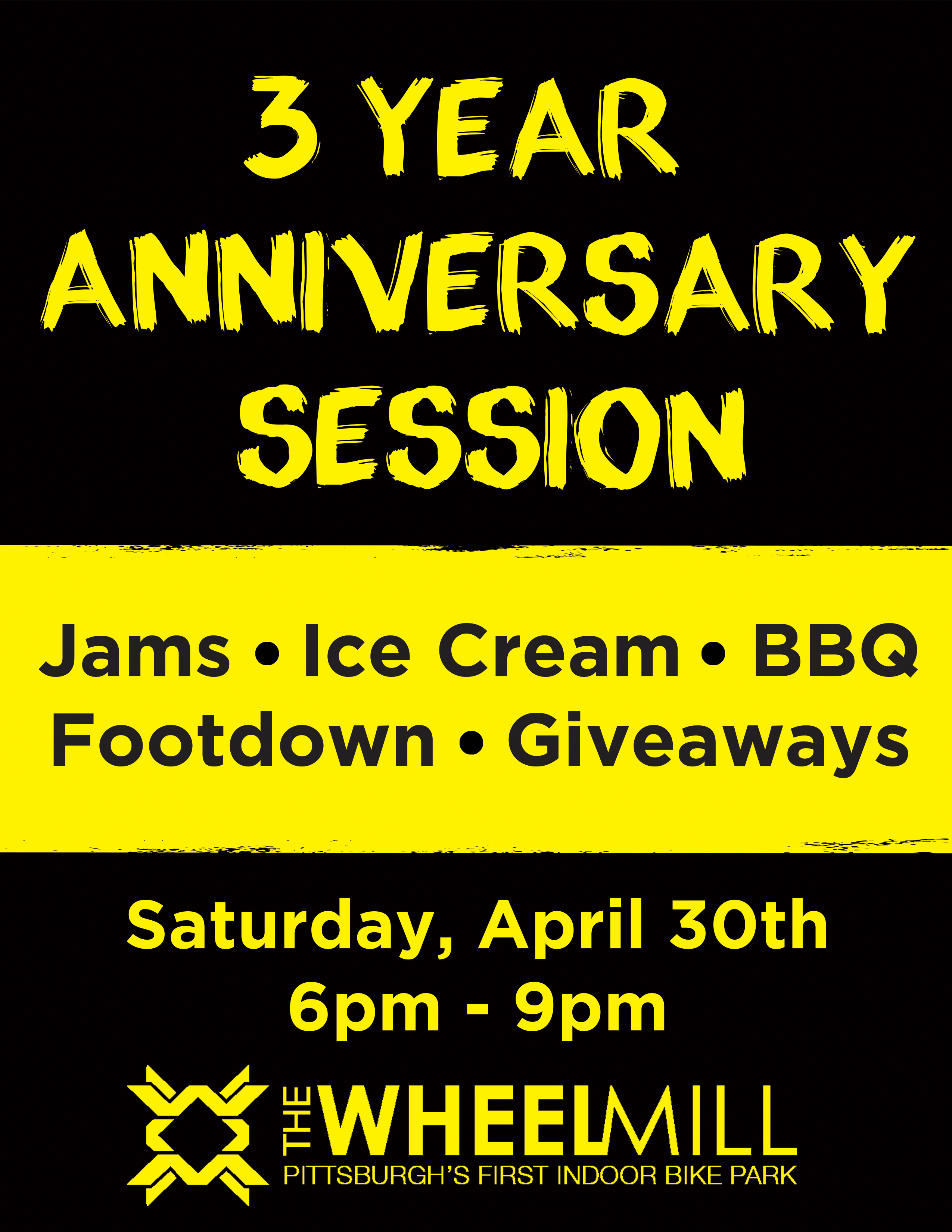 It’s already been 3 years! We’re stoked for many more years of riding. Come celebrate with us April 30th. We’ll be BBQing, having some ice cream and doing some riding. Come out to celebrate and have some fun with us from 6-9pm.